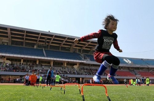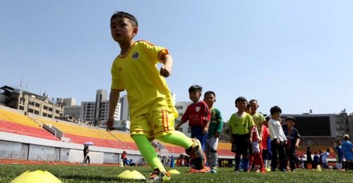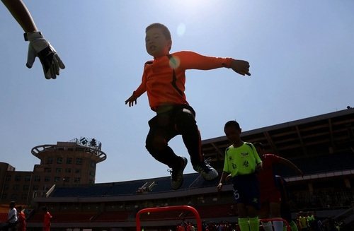 今天下午,昆明市足球精英训练营在市体育场面向社会公开选拔梯队队员,来自全市20多所小学和幼儿园的近400名少年儿童参加了选拔活动。