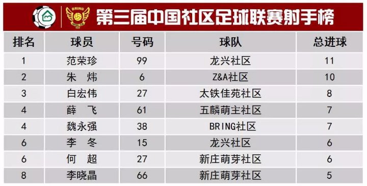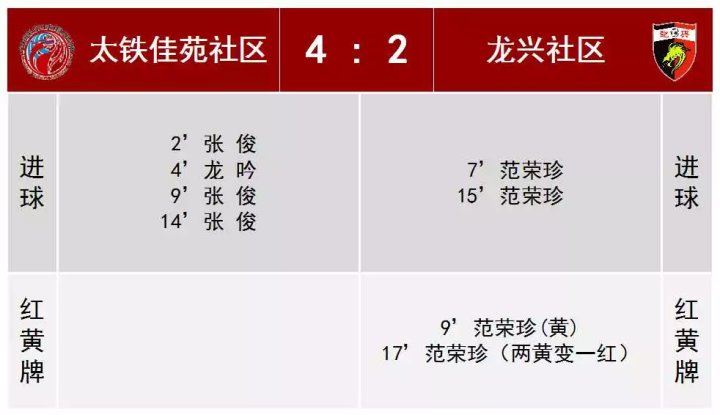 三四名的决赛注定是一场开放的比赛,双方在前15分钟就联手奉献了6粒进球!其中太铁佳苑的15号张俊帽子戏法,龙兴社区的范荣珍梅开二度。范荣珍也凭借这两粒进球把自己在本届赛事的进球数刷新到了11个!拿到了本届赛事的最佳射手!