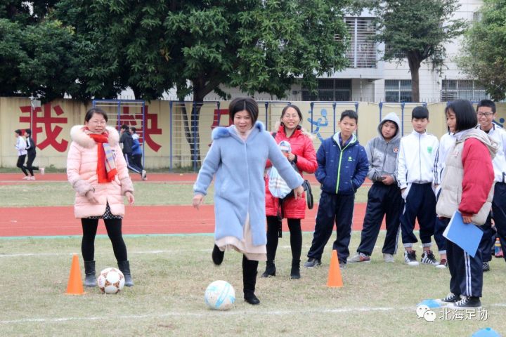 12月29日下午,北海九中校园足球场上一片欢声笑语,由市体育局主办,市足协承办的趣味足球进校园系列活动在热烈的开展,北海九中的师生在足协社会足球指导员的引导下,进行着形式多样的与足球相关的趣味游戏,通过活动激发了广大师生参与足球运动的热情,对足球运动在校园的推广起到了很好的带动作用。
