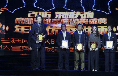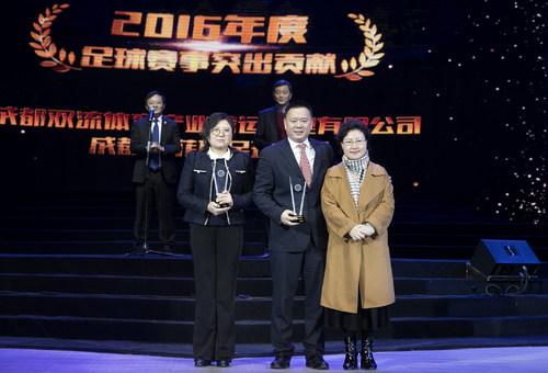 “2016荣耀天府· 成都足球年度颁奖晚会”在成都市广播电视台1号演播大厅圆满落幕。本次晚会揭晓了成都职业足球、精英足球、社会足球、校园足球和合作伙伴五大版块共计48项大奖,奖项覆盖成都足球老、中、青、少各个年龄阶段,共有250个单位或个人获奖。晚会以“我们的城市、我们的足球”为主题,体现出城市足球、全民参与的特色,让成都的“草根足球”享受到”职业足球”的待遇。