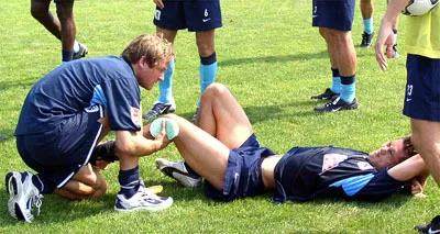 膝盖外翻常见于足球场上的新手。