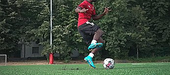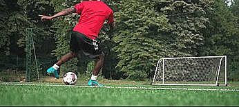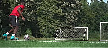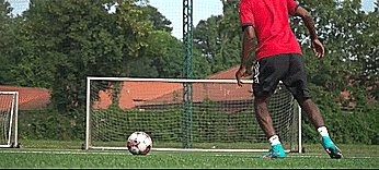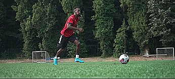 如果我们想让防守者相信我们会射门,我们首先要相信,所以一旦我们这样做了,把球踢到一侧,加快速度,就会逼真到我们真像射门一样。
